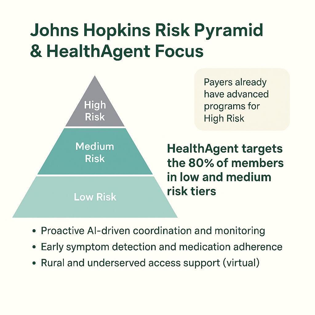 Payers overlook the bottom 80% due to limited resources and a reactive care model. This group often includes silent risers—people who don't engage until they crash (e.g., ER visit, hospitalization). Their unmanaged symptoms, poor adherence, and life challenges quietly build risk and cost.